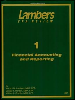 Volume One of the Lambers CPA Review series covers Financial Accounting and Reporting. The textbook contains review material, examples and practice questions with solutions. The multiple-choice questions and simulation exercises within the textbook help prepare candidates for the computer-based exam. Lambers CPA Review has been helping candidates prepare for the CPA Exam since 1966.